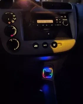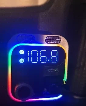 I tuned it to a blank radio frequency as instructed and it connected easily to my phone. It’s much more flexible than other products with pre-set stations. I can’t use the Aux option in my car, but the included cable is a nice touch. The volume dial syncs with my phone, which is convenient. The bass button needs a couple of seconds to activate but it's pretty noticeable. The lighting is cool, especially for night drives, and the various charging ports are handy. I haven’t tried phone conversations yet, but I’m optimistic about it. It's nicely compact compared to other models, making a real difference compared to using a portable speaker.
